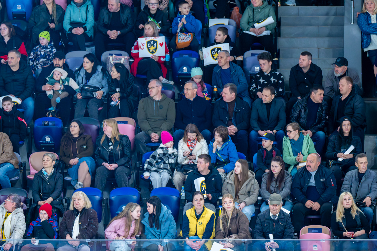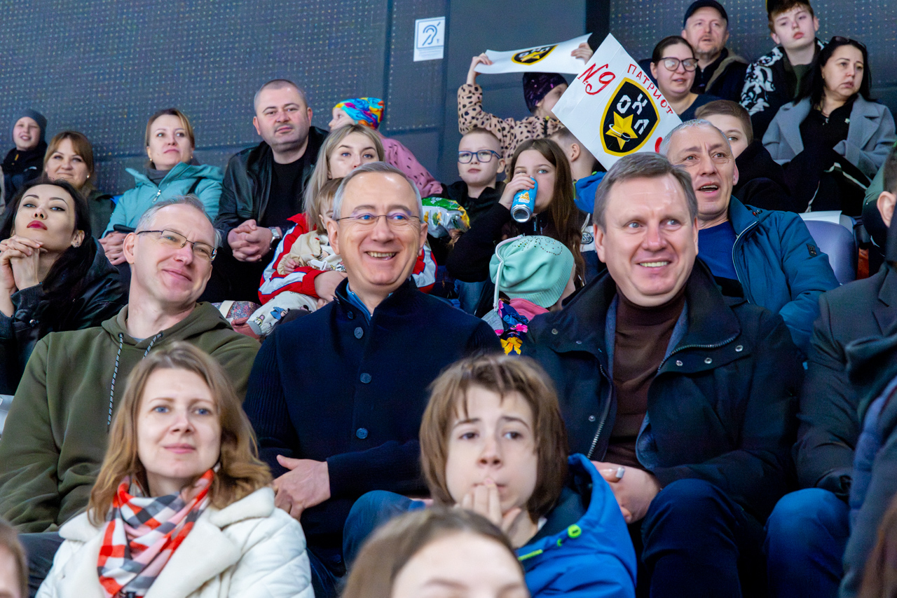 Ледовая арена приняла большое количество болельщиков, многие из которых пришли семьями. На территории дворца спорта для гостей организовали выставку техники МЧС, спортивные активности и работу полевой кухни.