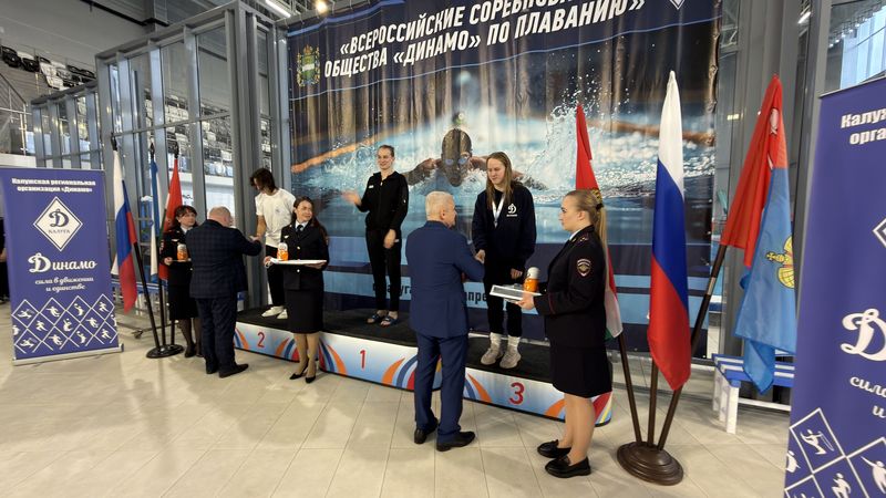 Церемония награждения победителей и призёров первого этапа всероссийских соревнований по плаванию, организованных Обществом «Динамо», состоялась в Калуге. Мероприятие прошло во Дворце спорта «Центральный». Участие в награждении принял начальник УМВД России по Калужской области и председатель региональной организации «Динамо» генерал-майор полиции Сергей Никифоров.